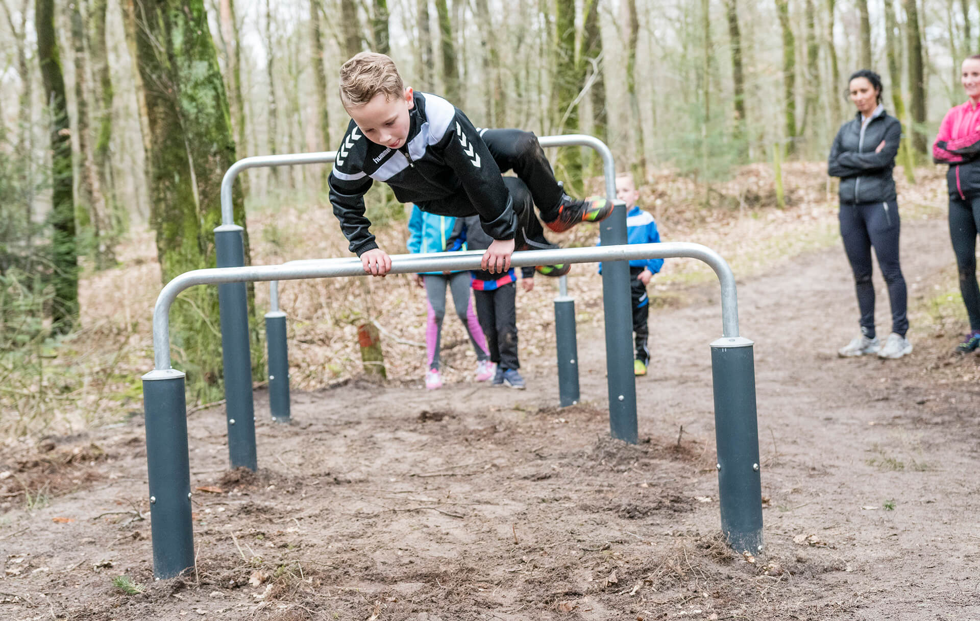 | - Trained athletes will go over the high bar and underneath the low bar, while the beginners will do it the other way around. A great way to train, strength, agility, coordination and flexibility. The Over Under obstacle is a great example that everyone can be challenged at their own level. The bars are positioned closely to another therefore a combination of lower body and upper body strength is required to overcome this obstacle. Rounded corners make it safe and simple for anyone to try exercises in which they swing over their legs over the bar. |