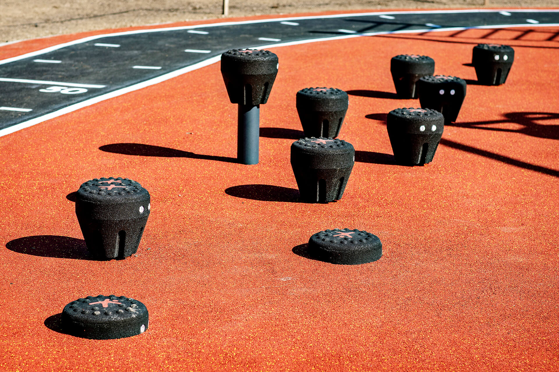 | - A set of three jump pods in the height of 10cm, 30 cm and 60 cm. Through combining different heights and arranging them with varying distance to have multiple difficulty levels, they are a great addition to any obstacle course. The material of the pods is carefully chosen to provide a good grip, even when it is wet. |